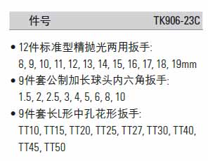| 1A0077 | TK906-23C | 两用扳手/内六角扳手/其他扳手 | 把 | ¥546.40元 | 1-3天 |