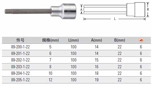 > 全部产品分类 > 五金工具 > 手动工具 > 扳手/套筒/扭矩扳手 > 套筒 > 12.5MM系列100MM长6角批头套筒