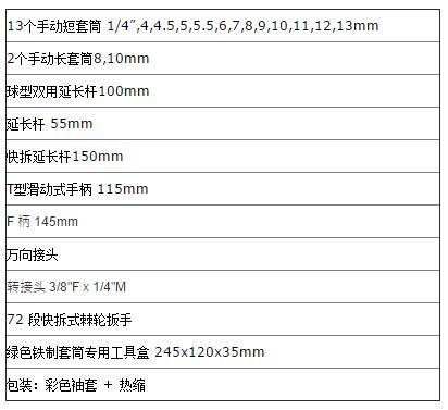 > 全部产品分类 > 五金工具 > 手动工具 > 扳手/套筒/扭矩扳手 > 组套扳手 > 1/4寸 23件套筒工具组套